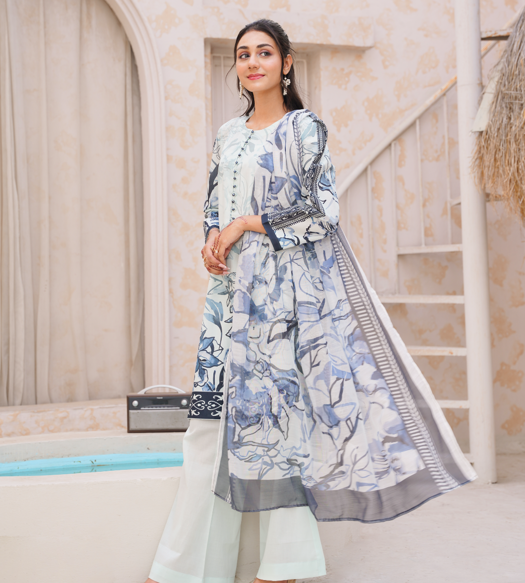 Add a touch of floral elegance to your everyday style with Petal Parade by Aroshlay. This 3-piece printed cambric suit is crafted with soft prints and breathable fabrics, bringing comfort and beauty together effortlessly.